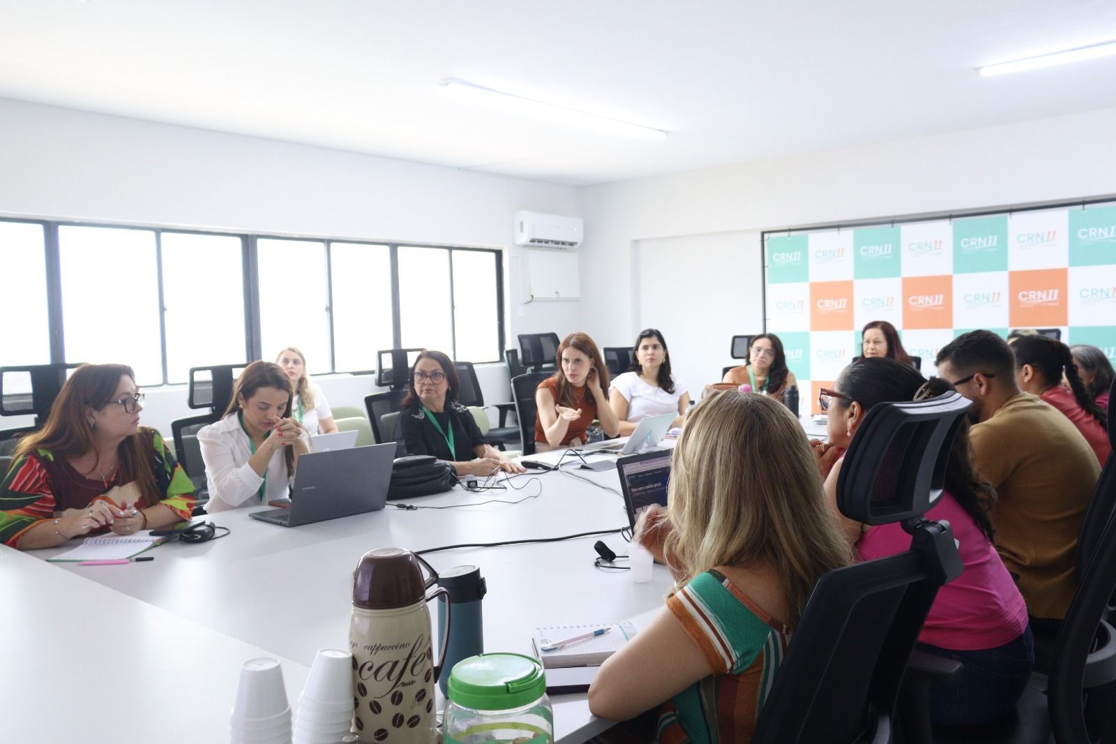 O setor técnico também participou do encontro com a coordenadora Emanuela Catunda e a coordenadora da Comissão de Formação Profissional, Sheila Vasconcelos. Juntas, apresentaram esclarecimentos sobre as Diretrizes Curriculares Nacionais (DCNs) do curso de Nutrição, com foco nas atualizações essenciais para a fiscalização da supervisão de estágios curriculares e extracurriculares.